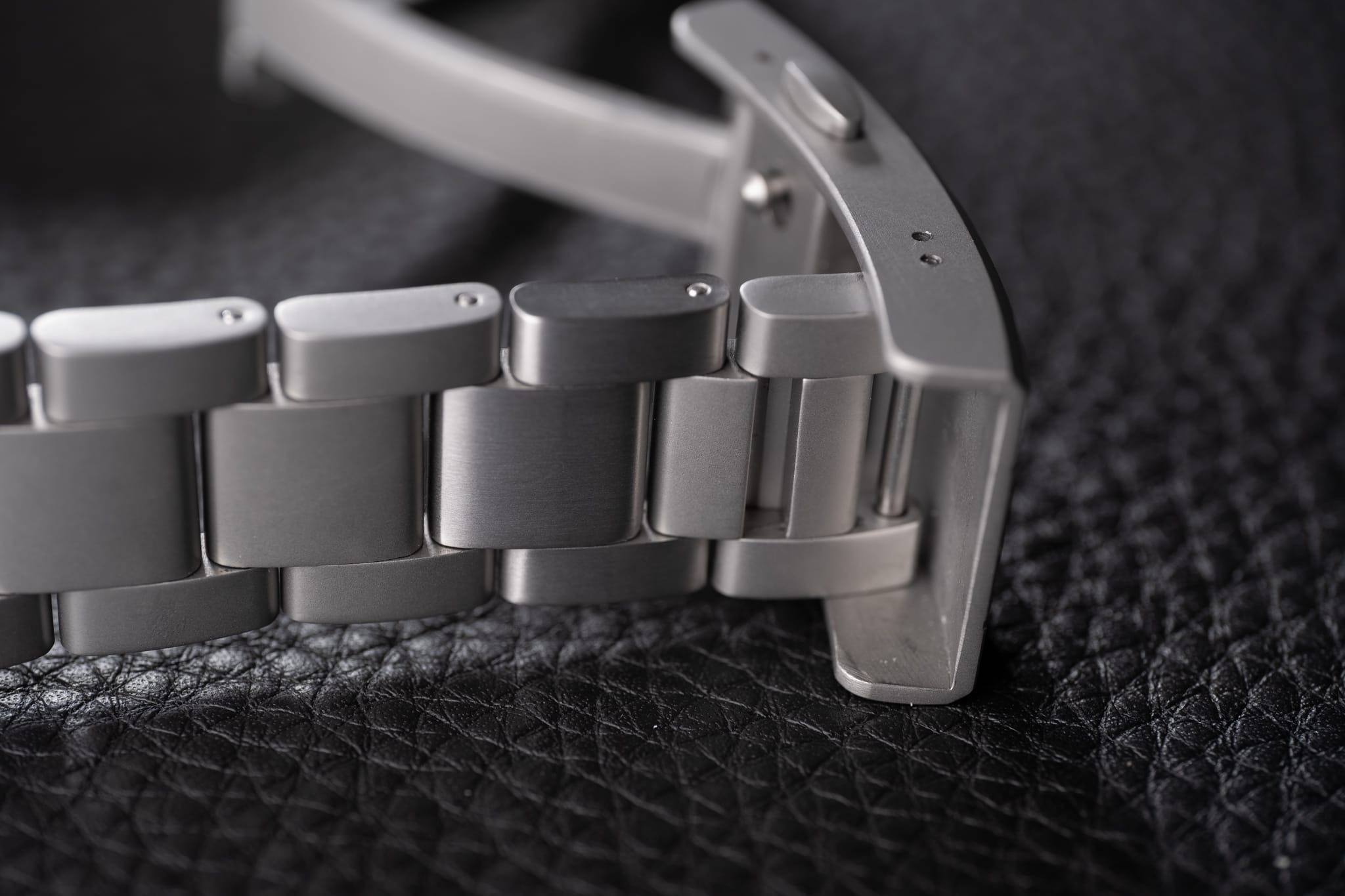 All watches are supplied as standard on a custom FKM rubber strap with Ontic branding to inner and matching titanium signed pin buckle. Cleverly, even the holes for the pin buckle feature the Ontic ‘O’ design, a nice touch and something I don’t think I’ve seen before. My strap was excessively long (I have big wrists but was on the second to last hole), however when I contacted John about this he was already on the case, so rest assured retailed watches will have standard length straps. A three-link quick-release bracelet option is available for non-PVD versions of the Utility 40 at an additional cost of £99, although to be honest I think this should be included in the price. The bracelet tapers from 20mm at the watch head down to 16mm at the clasp and has female end links, helping keep the lug-to-lug short. Removeable links are secured by one-sided screws for ease of adjustment and the clasp is engraved with the Ontic ‘O’ and a series of lines which mimic a continuation of the bracelet links. There is only one additional hole for micro-adjustment, but there is a Rolex Easylink-style comfort extension (effectively a ‘spare’ link that can either be pulled out to provide extension or clicked back into place to shorten).