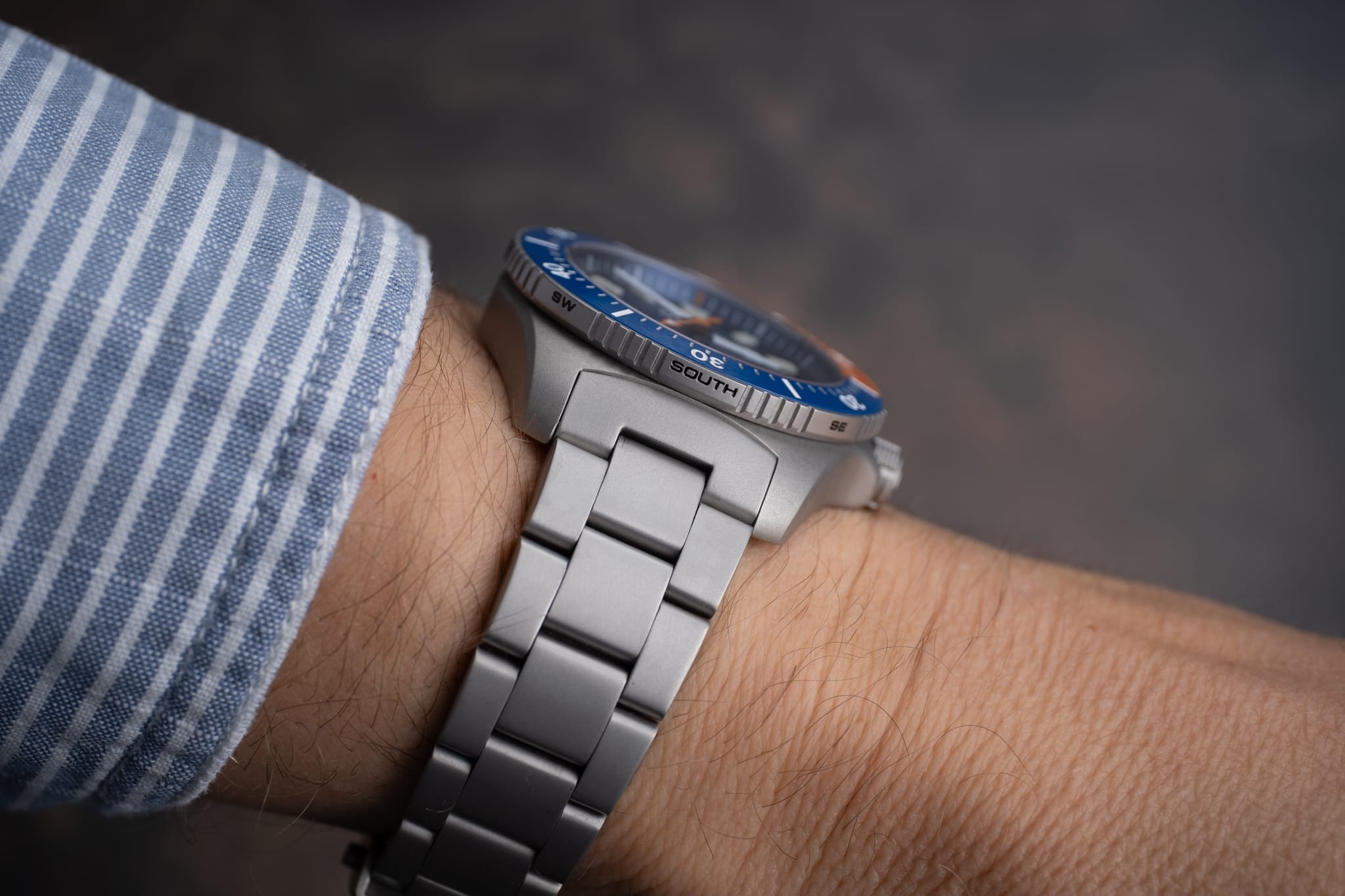 The 46mm lug-to-lug measurement, female end links and gently curved case helps keep the span across the wrist nice and compact and the 12mm total thickness is just about perfect for this type of watch. The dimensions and case materials gave me an inkling that this watch would wear well, but I was still somewhat taken back by just how light the watch is on the bracelet. It somehow feels even lighter than its 101 grammes, sized for my 7.25-inch wrist. It kind of provides the best of both worlds; it’s not a delicate looking watch, but it wears as comfortably as any watch I own. You barely notice you’ve got a watch on at all.