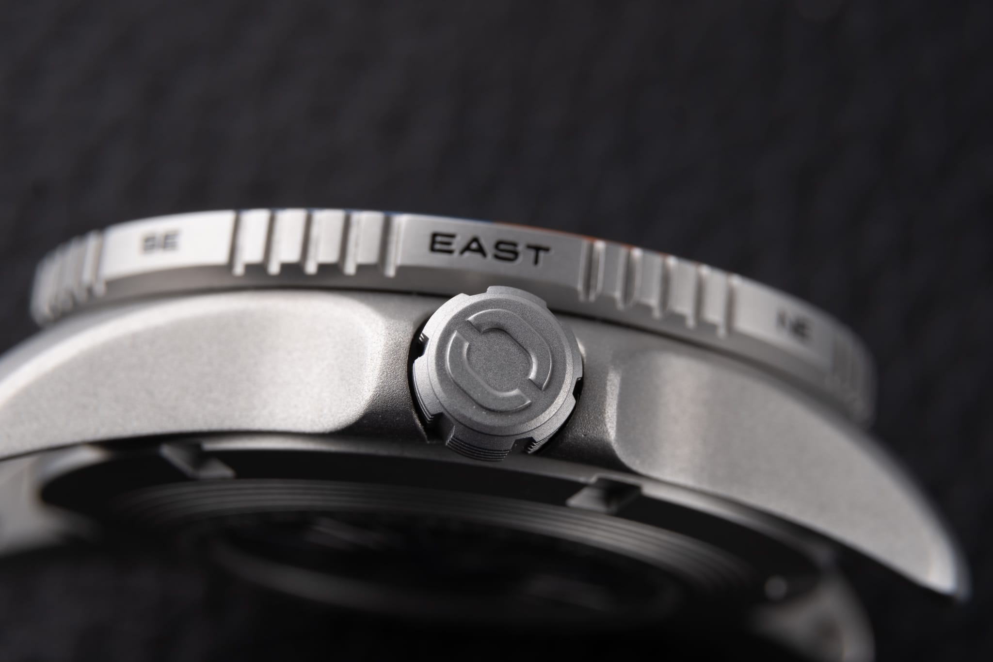 Integrated crown guards protect the grippy 7mm signed crown which features a deeply engraved custom knurling pattern. The crown screws down with confidence, and together with the screw-down caseback helps provide 300 metres of water resistance.